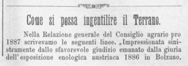 Stručni članak o uzgoju terana, autor Karlo Hugues, naslovljen Come si possa ingentilire il Terrano (Kako se može omekšati teran) objavljen u časopisu La Provincia dell'Istria.